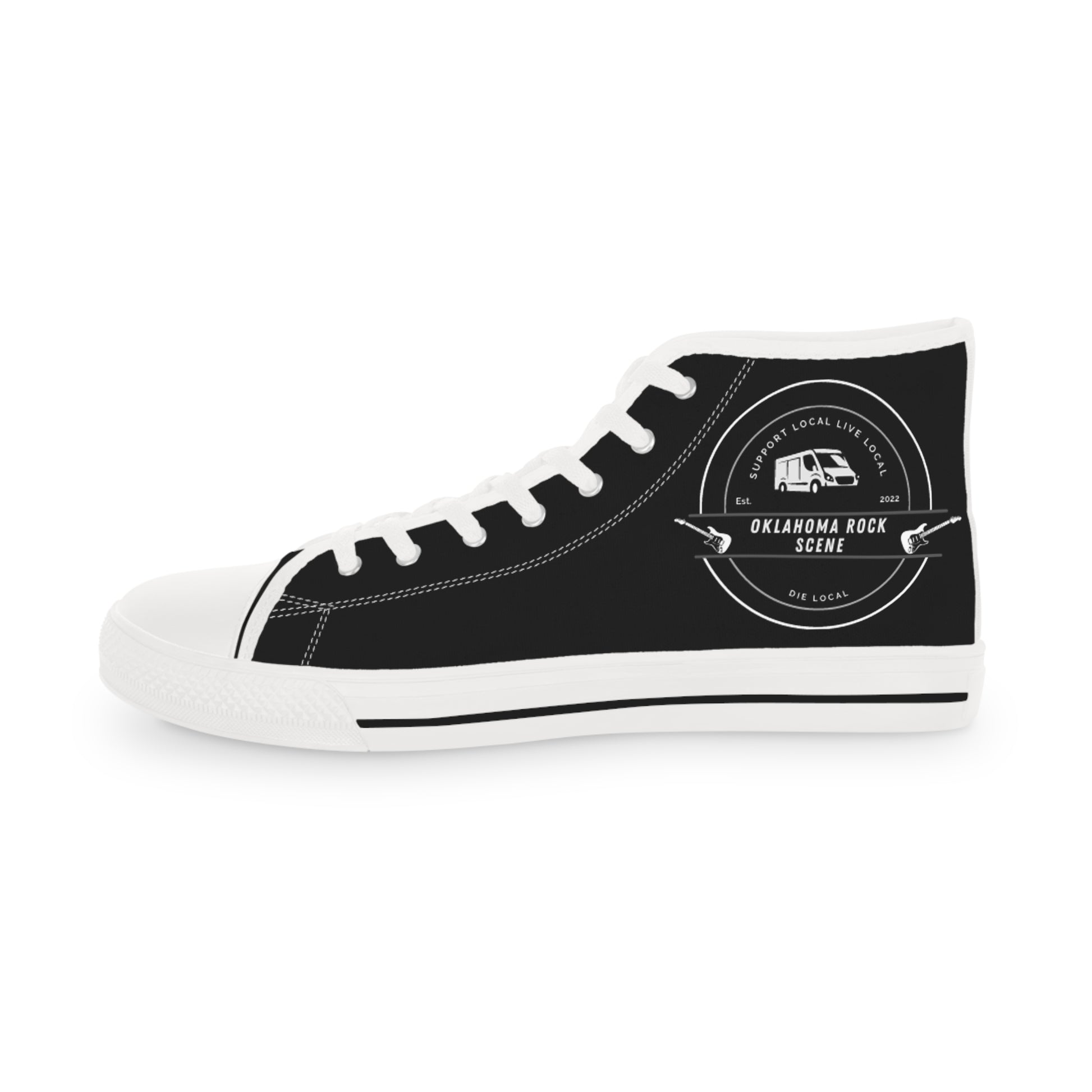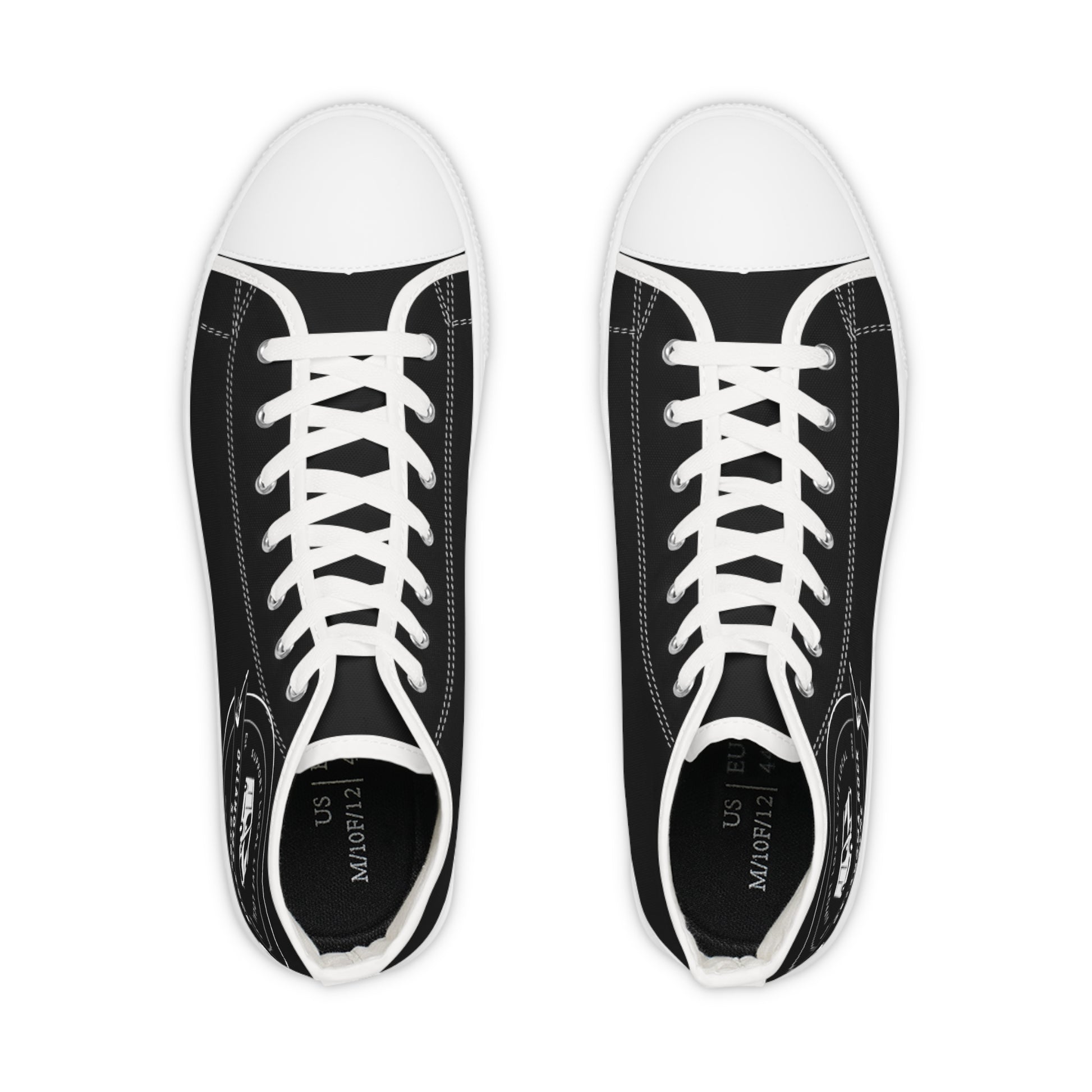 Made with breathable polyester canvas and featuring hi-poly deodorant memory foam insoles, these high top sneakers for men bear all the marks of an awesome shoe. Choose between black or white sole and laces, and enjoy the silver metal eyelets along with the lace-up closure. Add your designs and bring a bespoke staple to life.